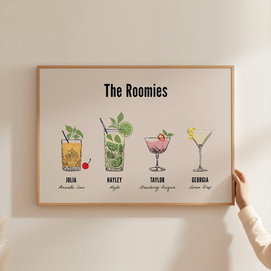 Custom Roommate Cocktail Drink Print | Style 01 (2-4 People) | Horizontal Bar Cart Decor