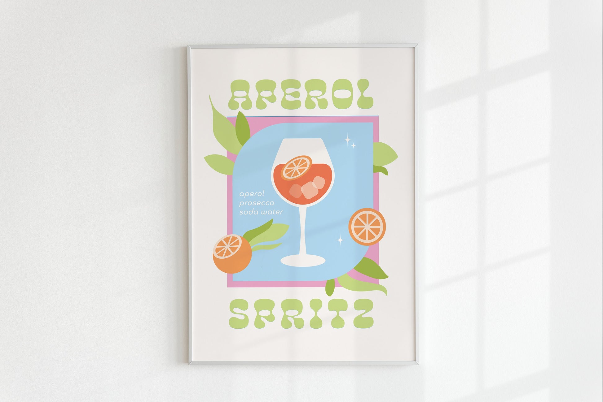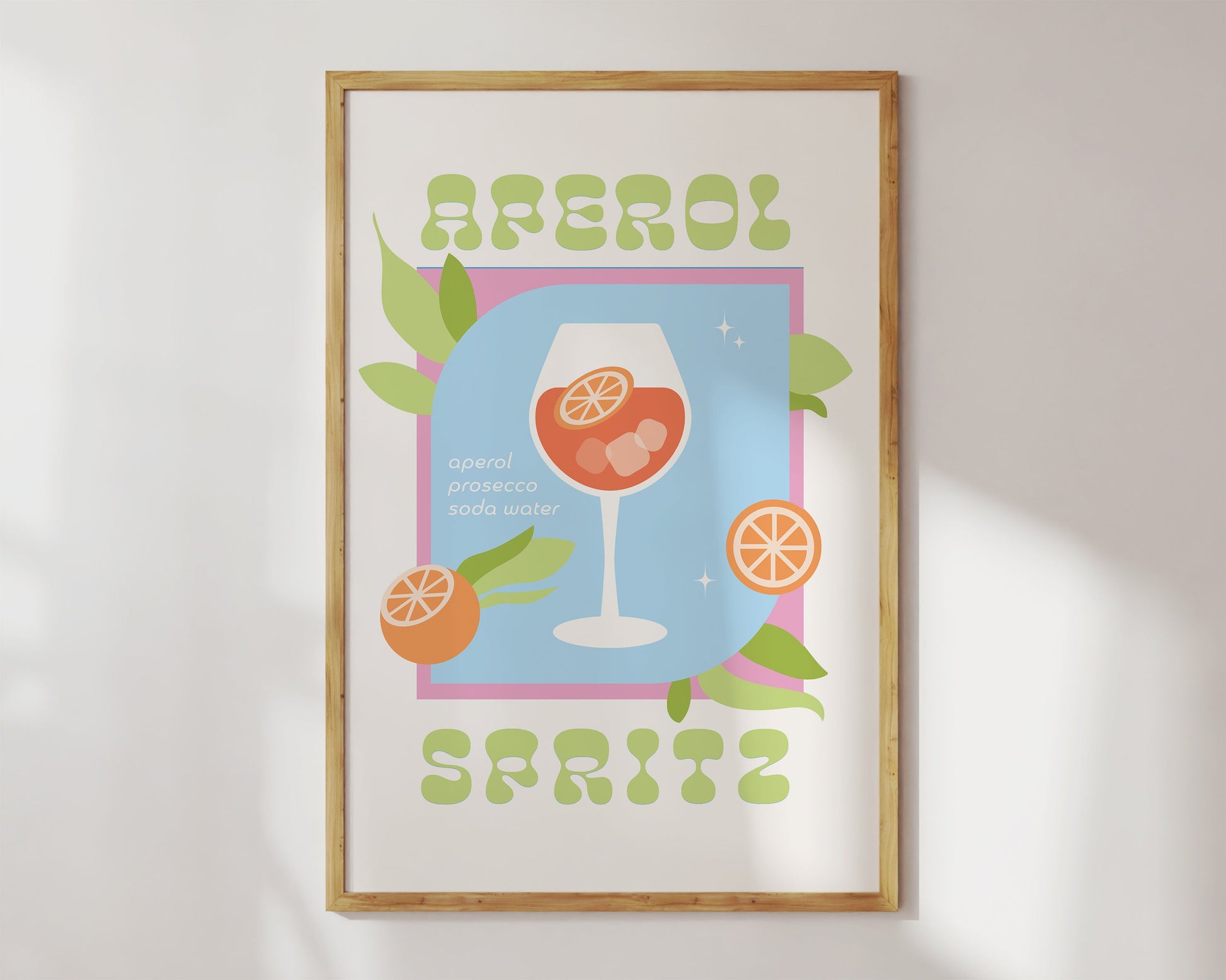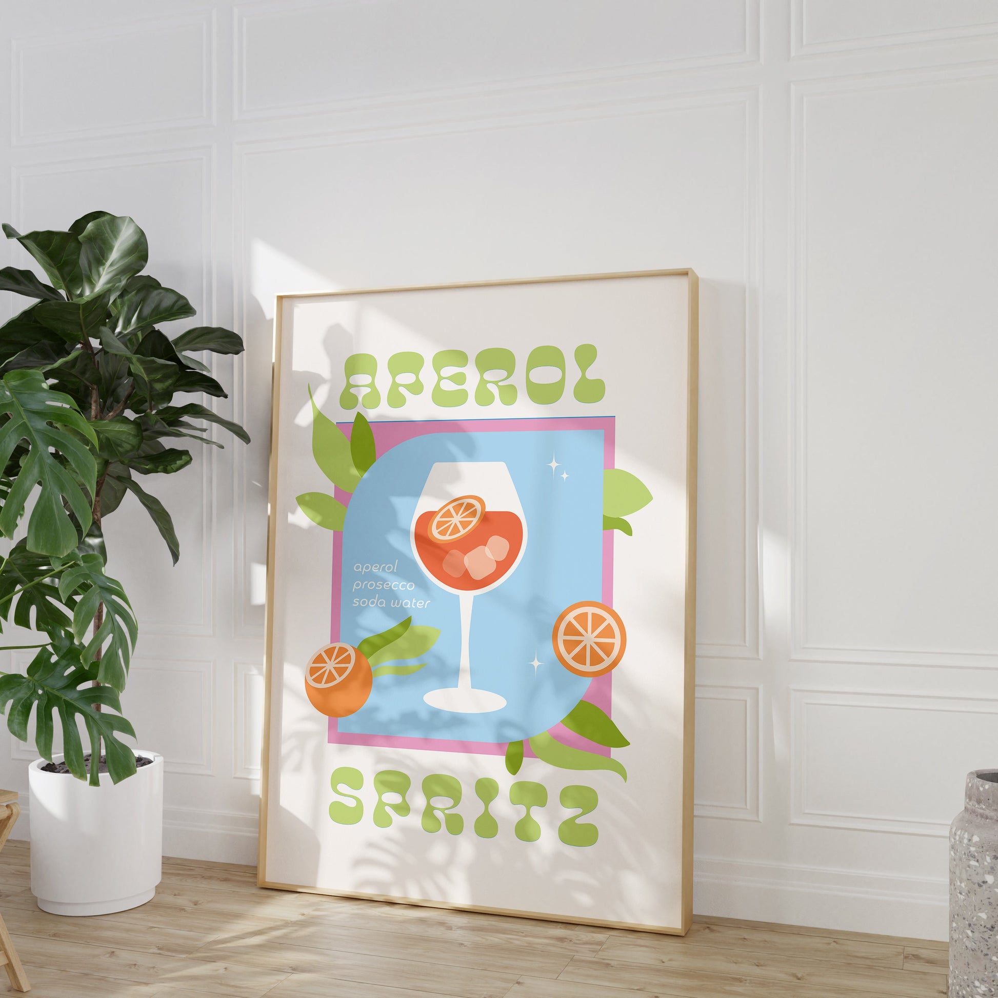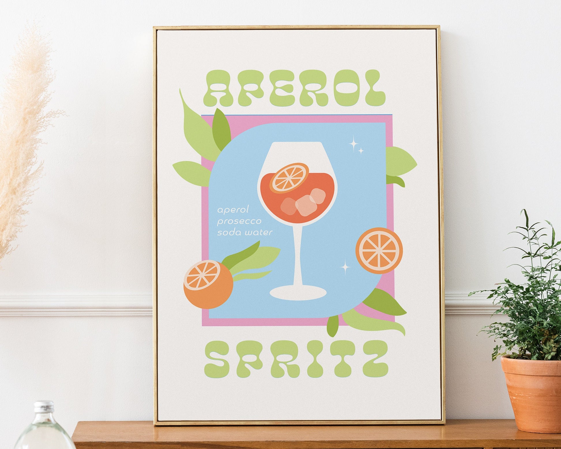 This colorful and vibrant Aperol Spritz Cocktail Print will make a stylish addition to any kitchen or bar area. It will surely add a touch of retro charm to your space. Whether it's for personal enjoyment or gifting to a cocktail enthusiast, this print is a perfect choice.