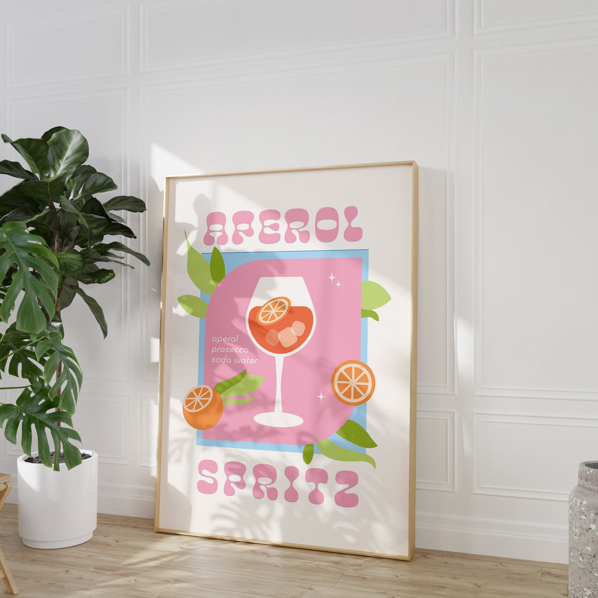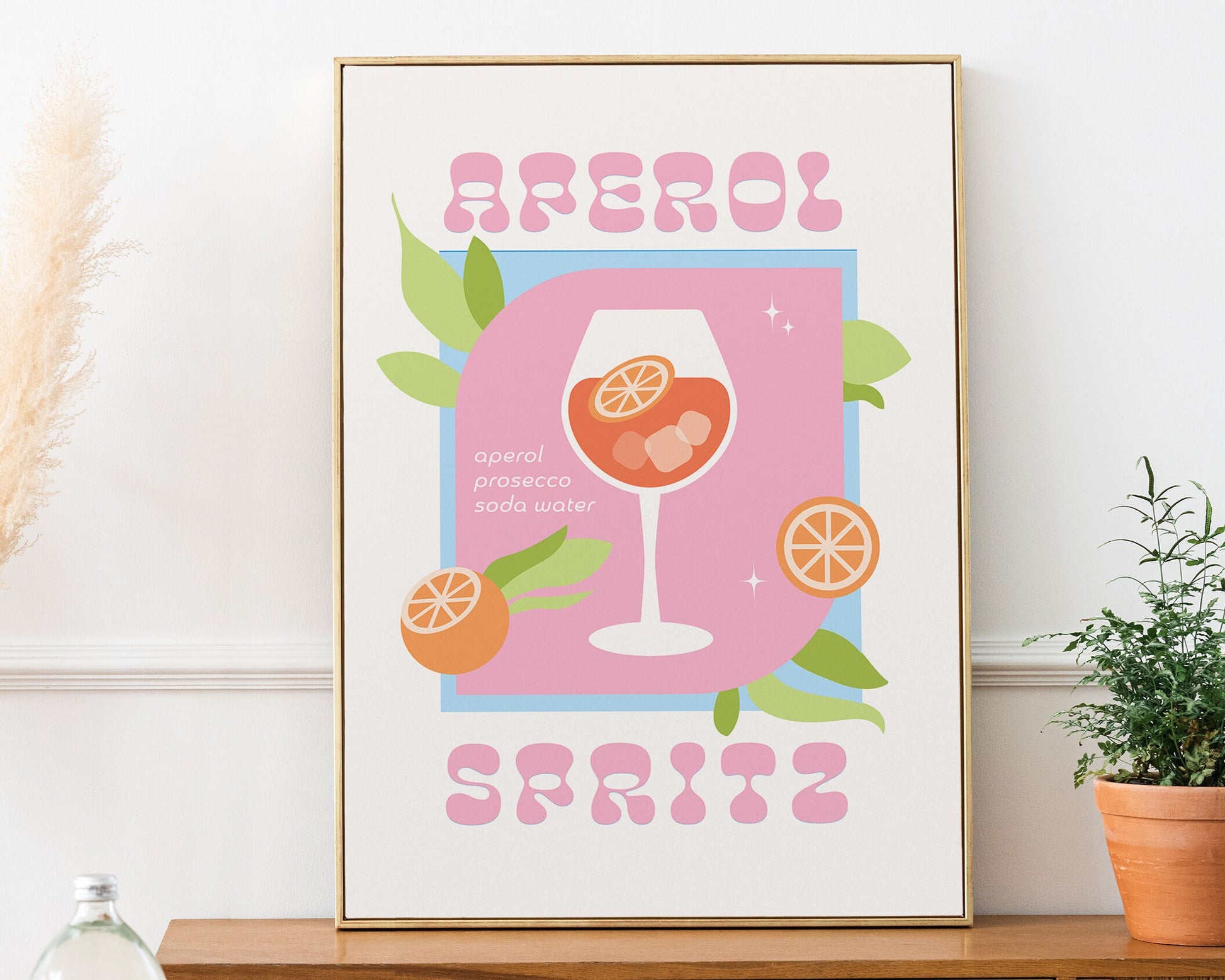 Create a charming and nostalgic ambiance in your home with this vintage-inspired Aperol Spritz Cocktail print. Whether displayed in your kitchen, dining room, or home bar, it is sure to add a touch of whimsy to your decor. Made with high-quality paper, this print arrives ready to frame and makes a great gift for any cocktail lover.