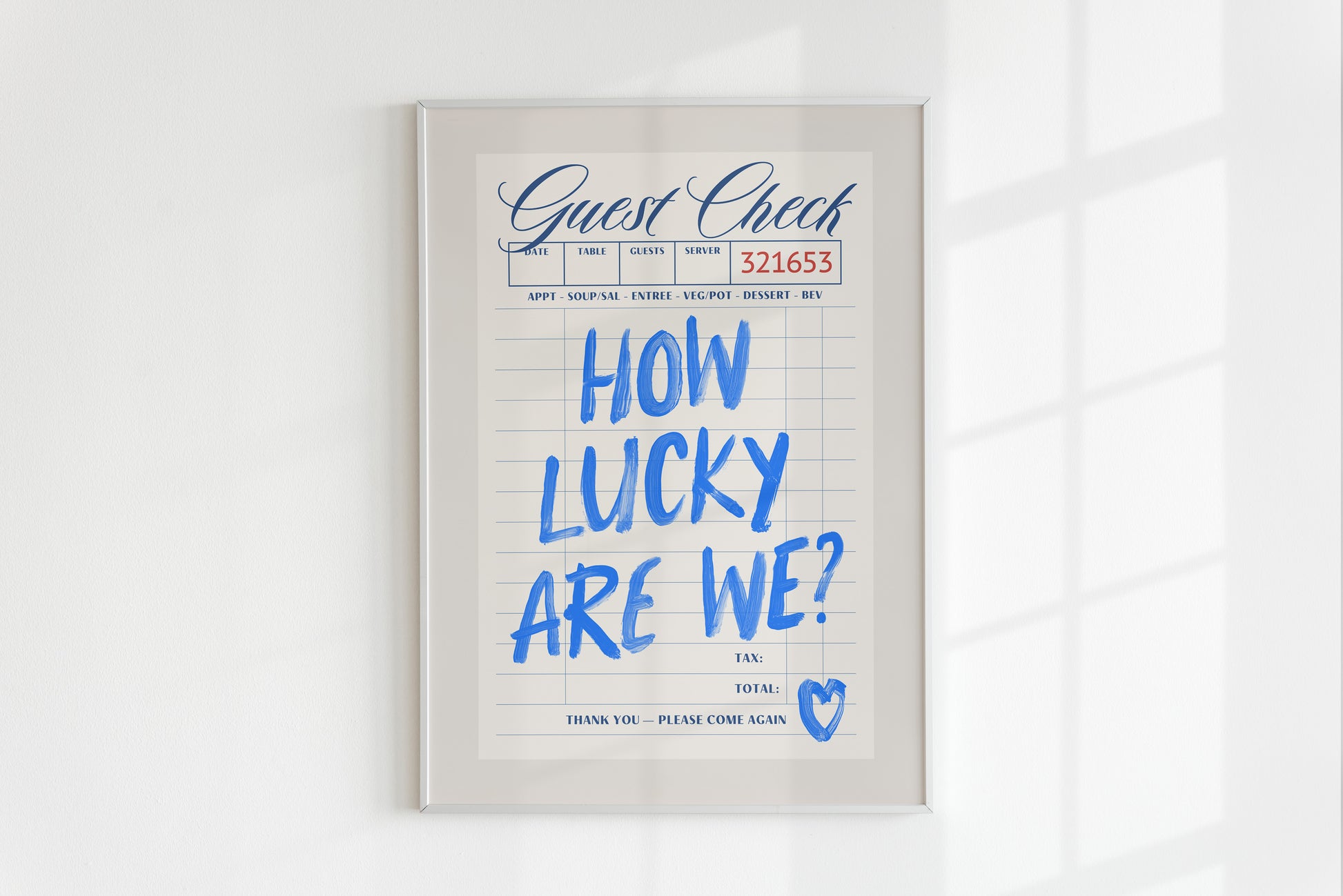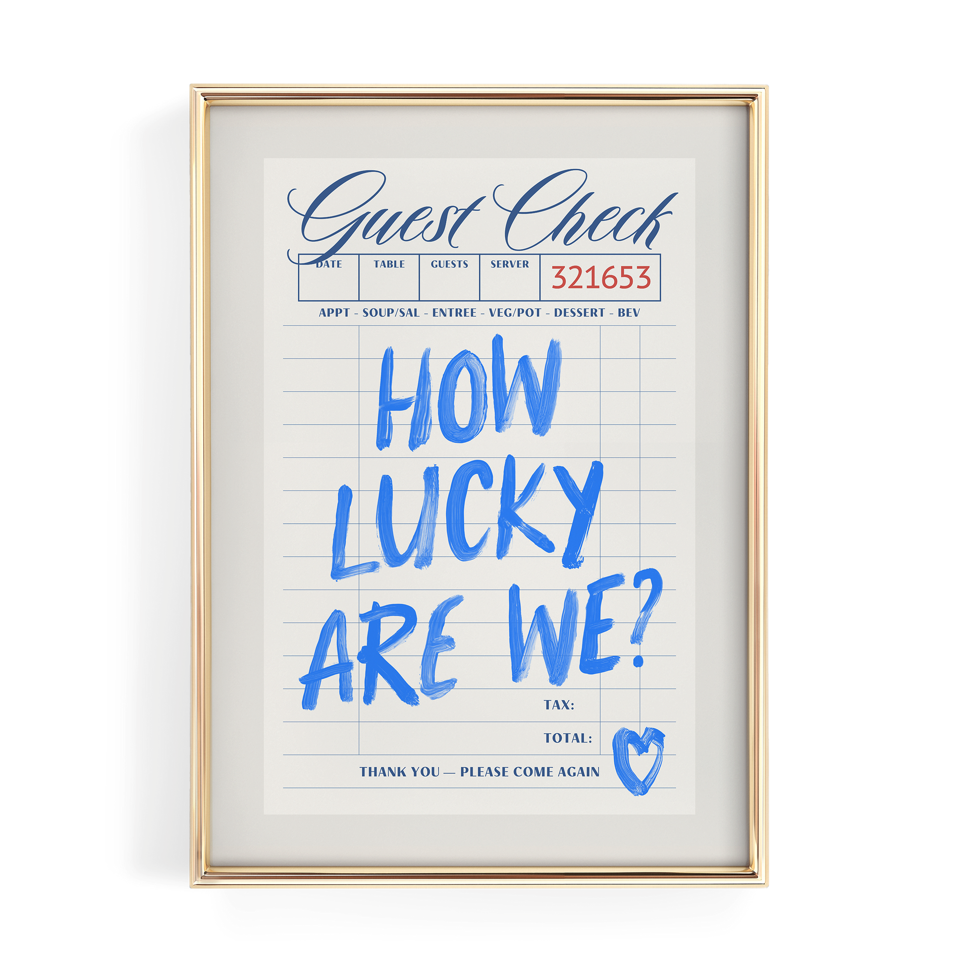 Blue How Lucky Are We Guest Check