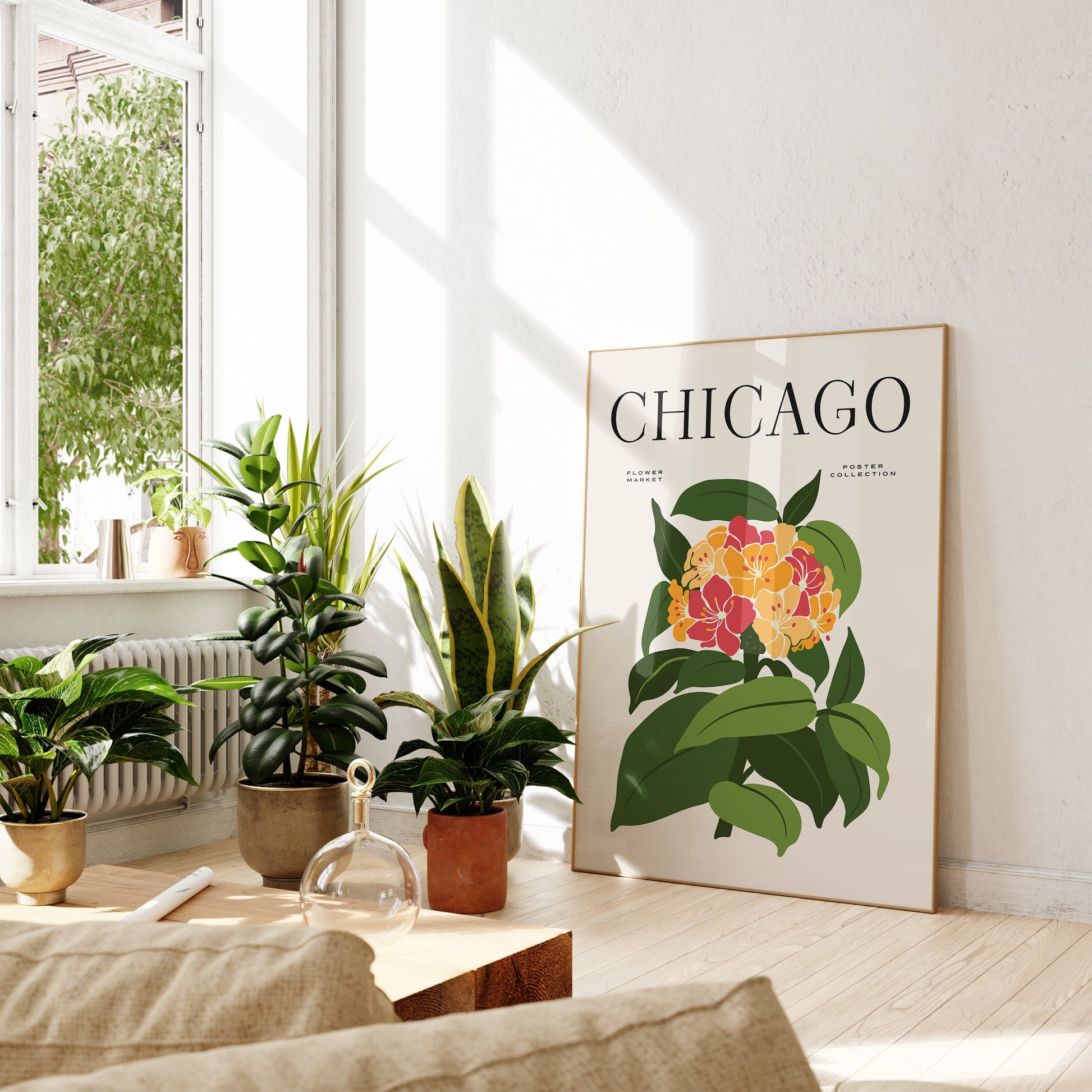 Discover the vibrant beauty of Chicago's Flower Market with this stunning botanical wall art print. Perfect for any home or office.