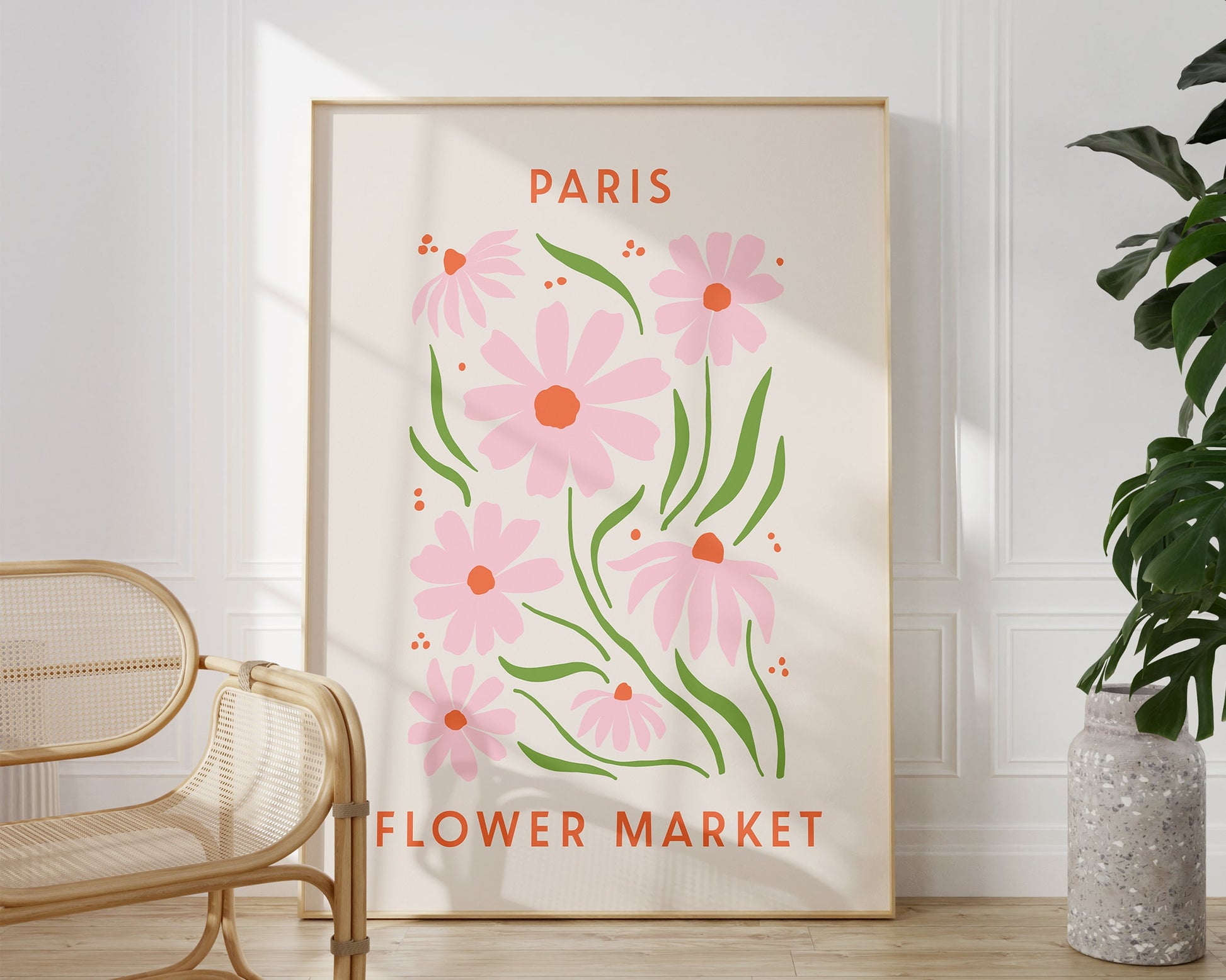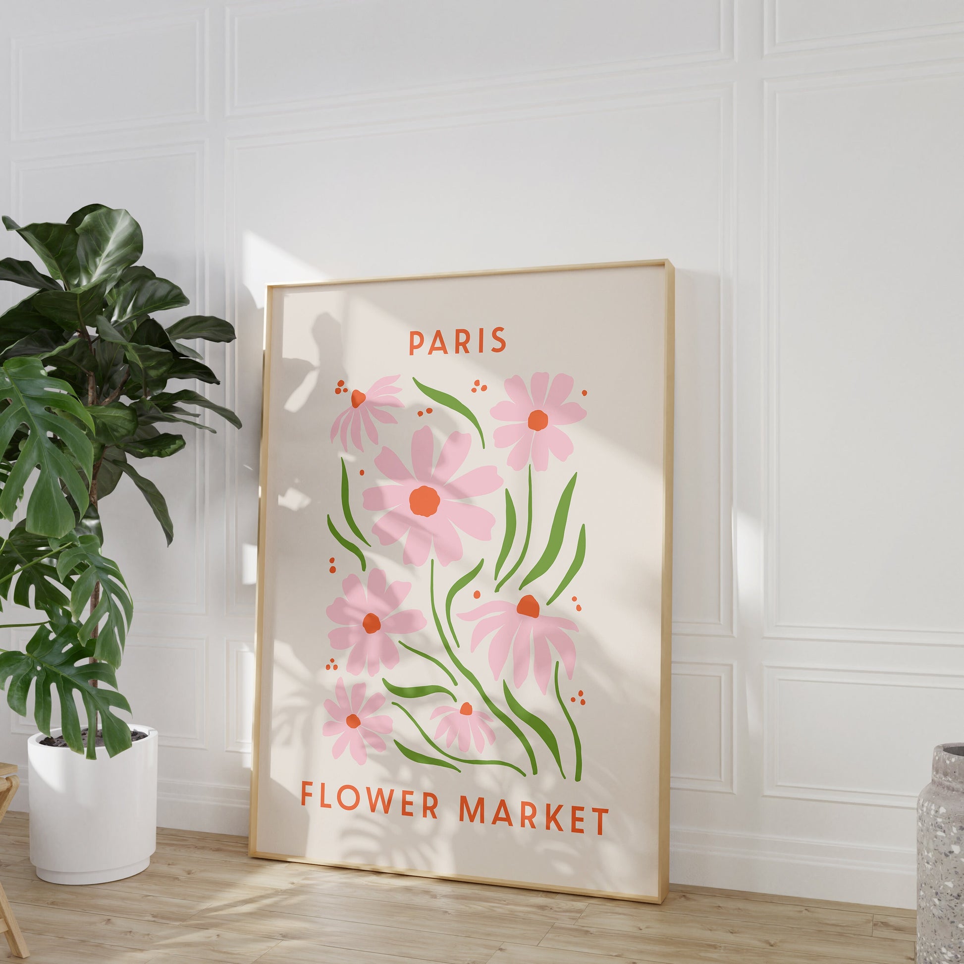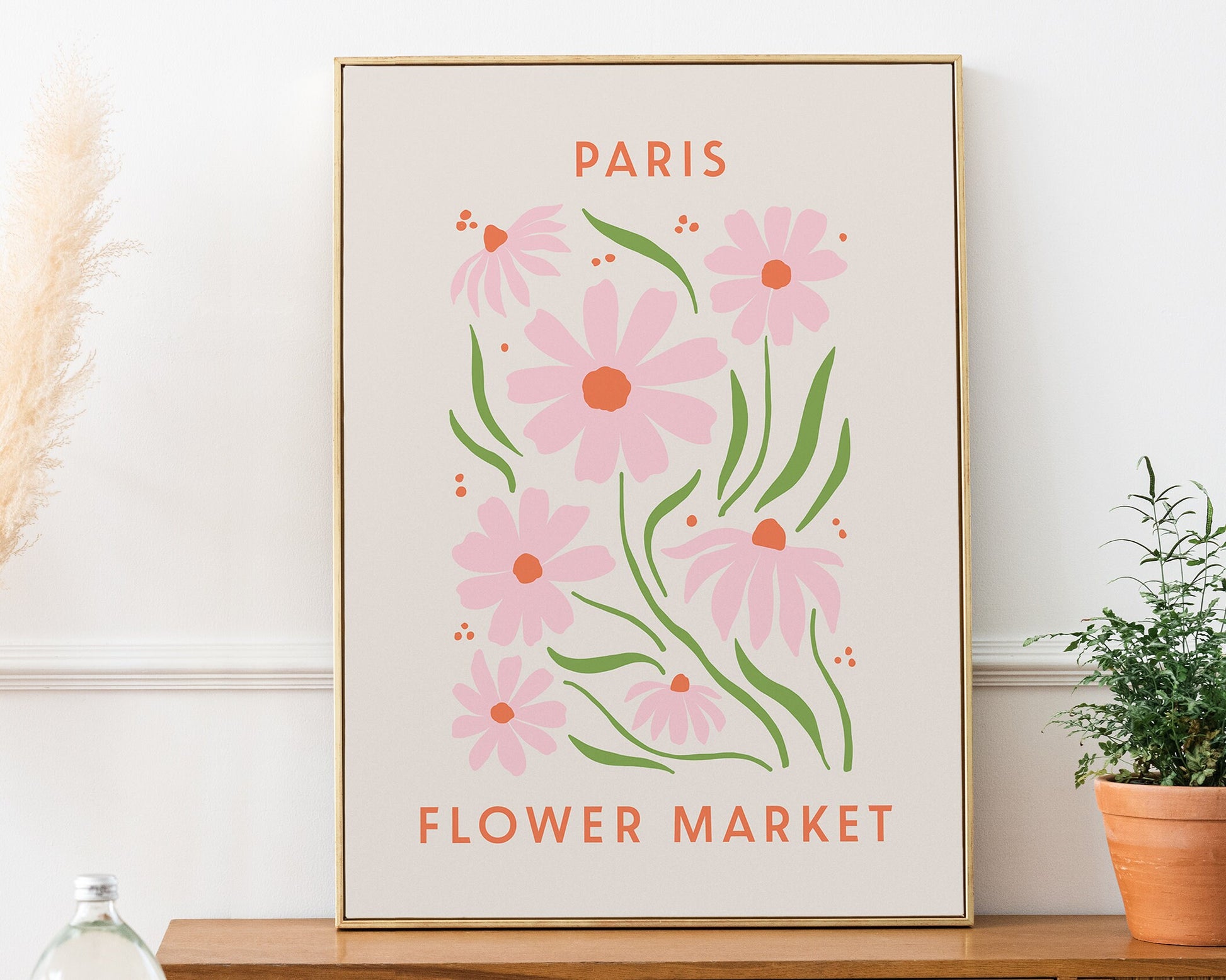 Capture the essence of Paris with this stunning Flower Market print. This beautiful botanical wall art captures the charm of Flower Markets in Paris, France and makes for a perfect addition to any home decor.