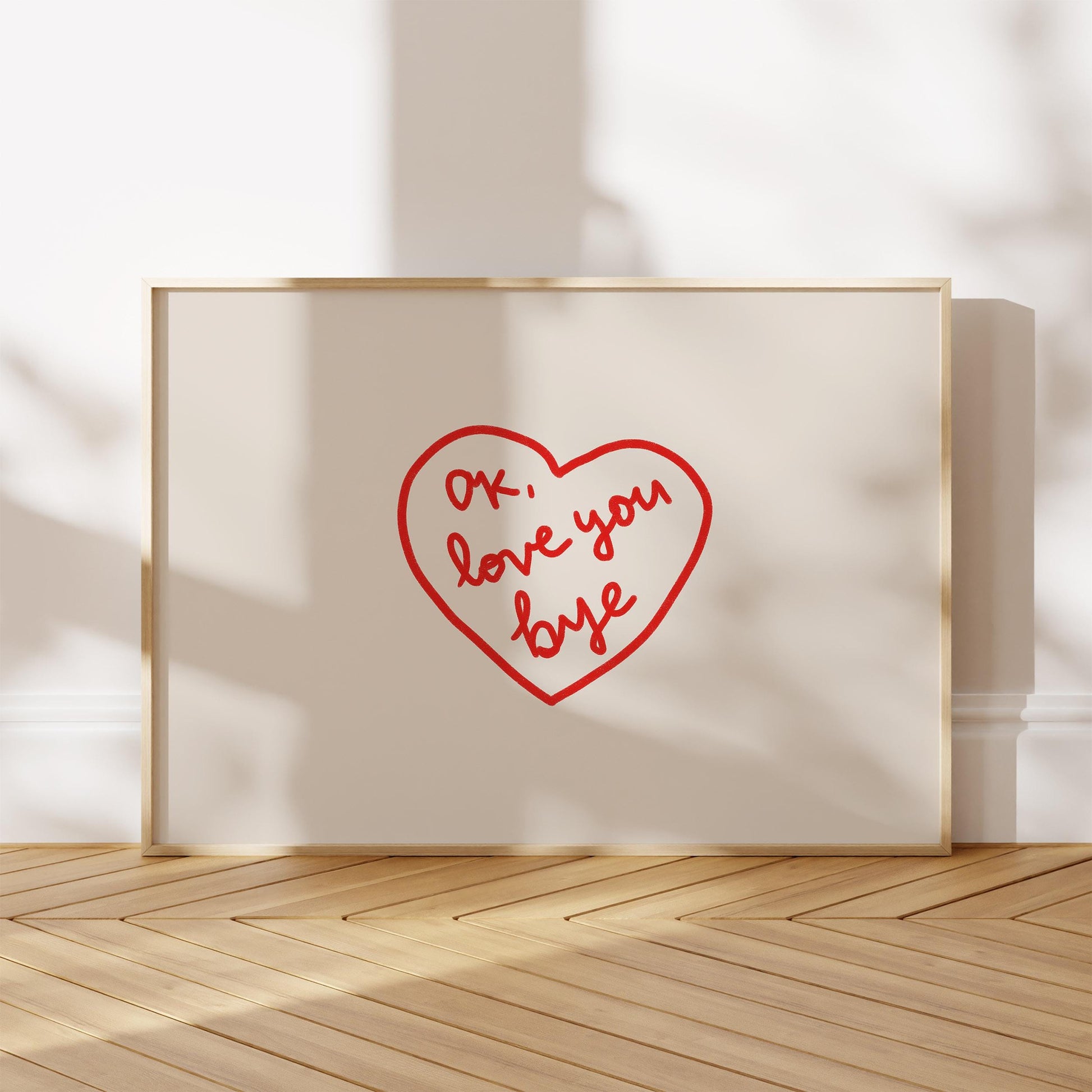 Ok Love You Bye Print | Red Heart Wall Art | Trendy Entryway Decor for Living Room
