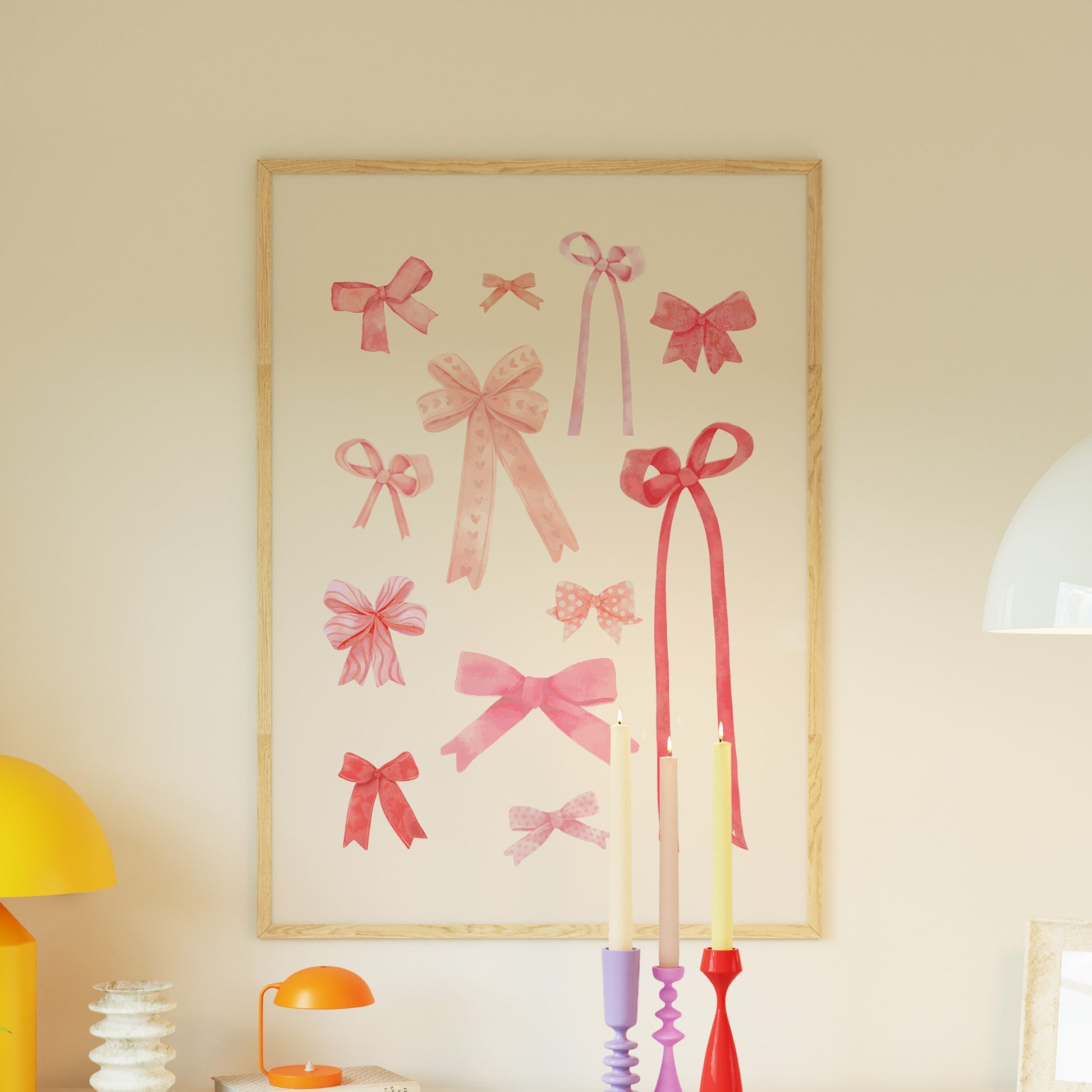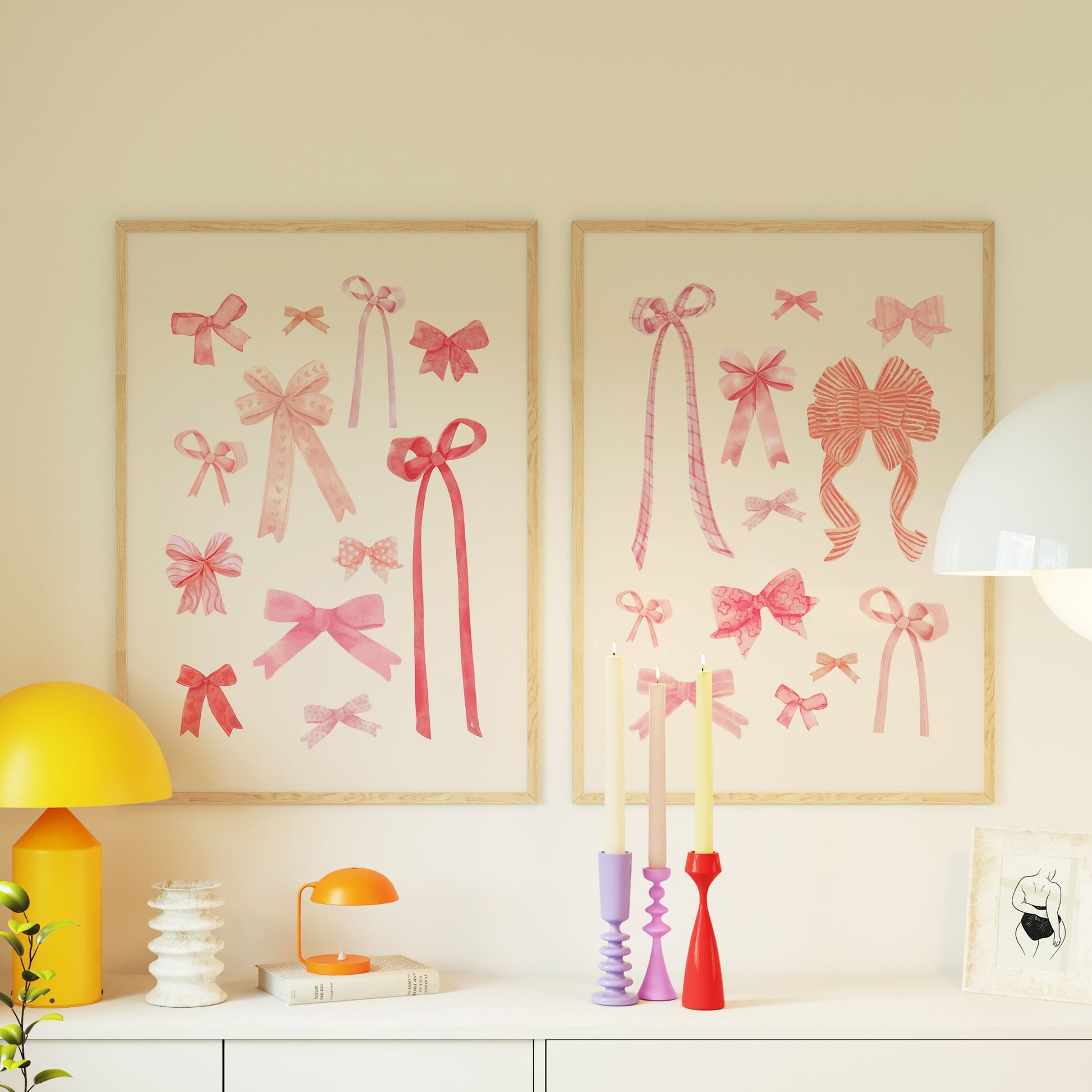 This Coquette Bow Set is perfect for adding a touch of sophistication to any room. With 2 digital prints featuring trendy coquette designs, these wall art pieces are an ideal addition to an apartment or college dorm. The preppy watercolor designs adds an elegant touch, while the pink bows provide a girly and maximalist touch.