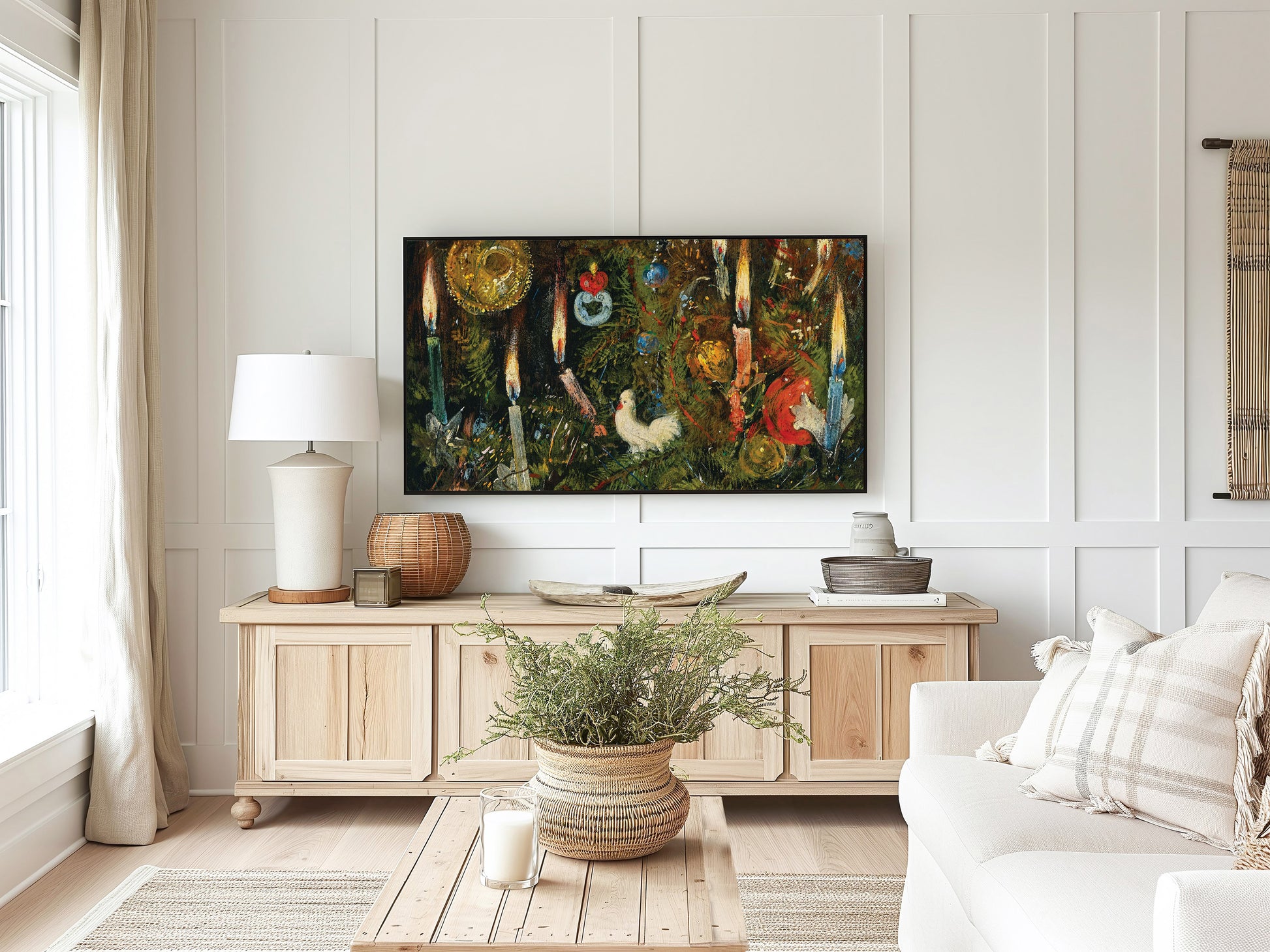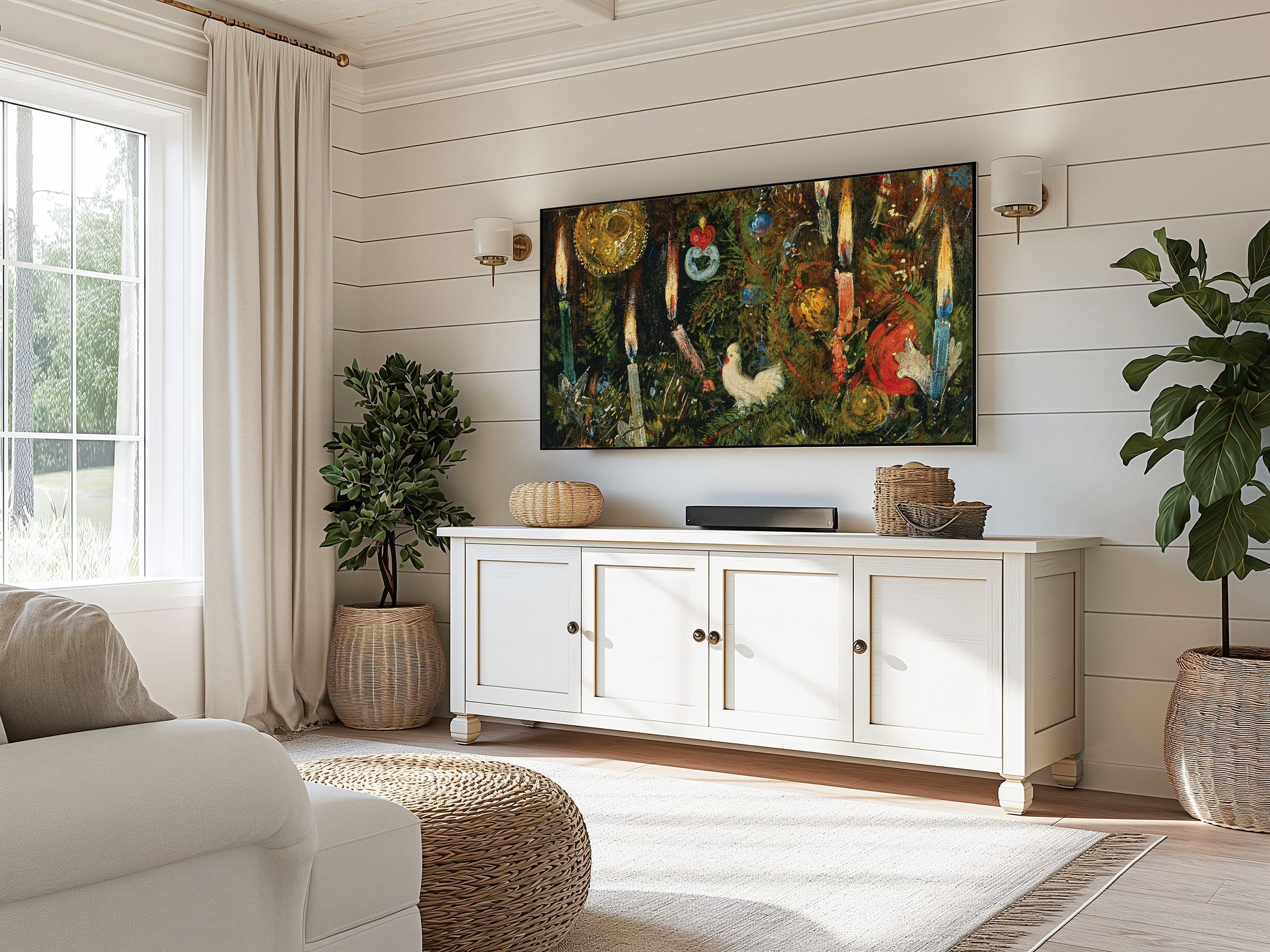 Instantly transform your Samsung Frame TV into a stunning work of art that suits any mood or occasion. A simple way to elevate your space and make your screen feel like part of your home’s aesthetic.