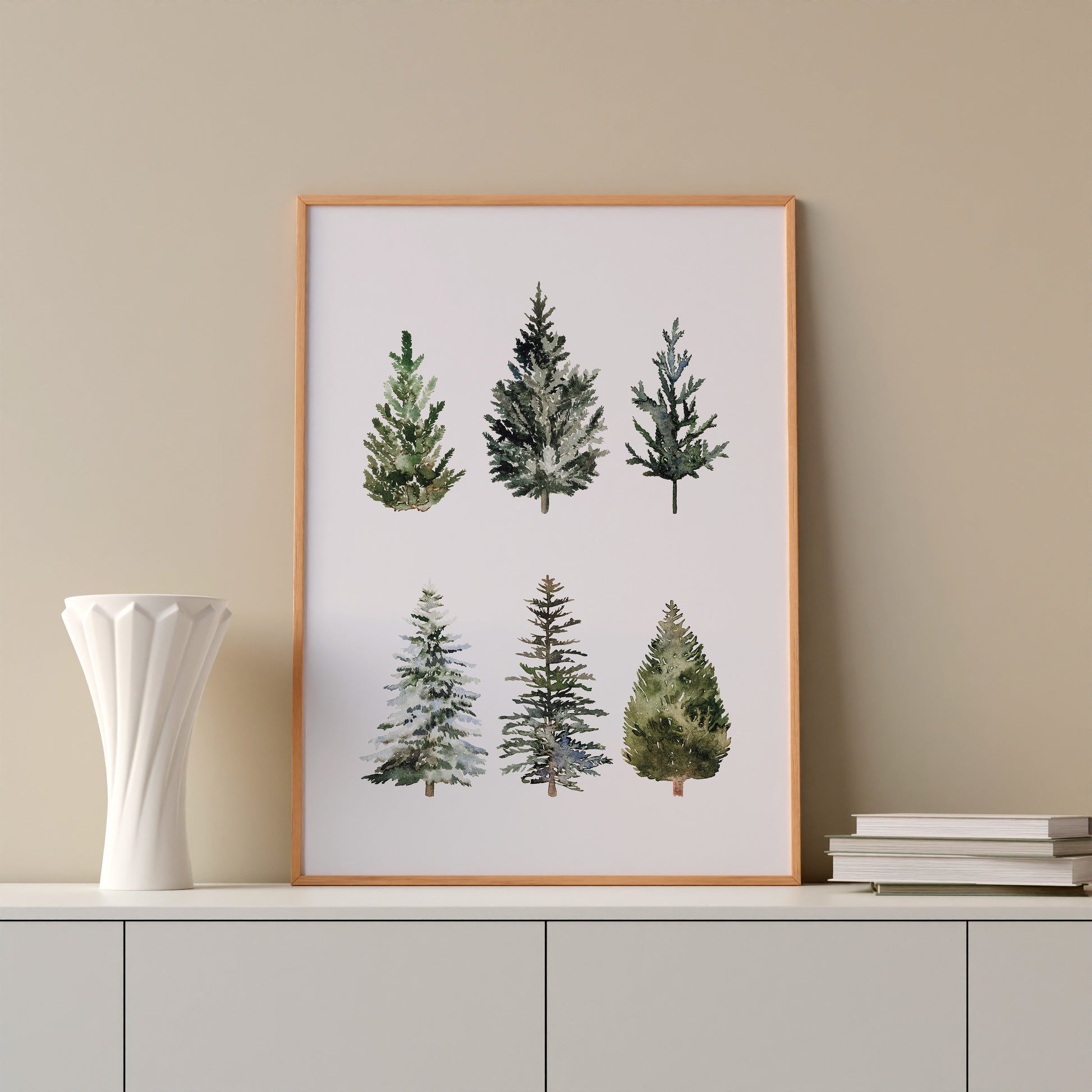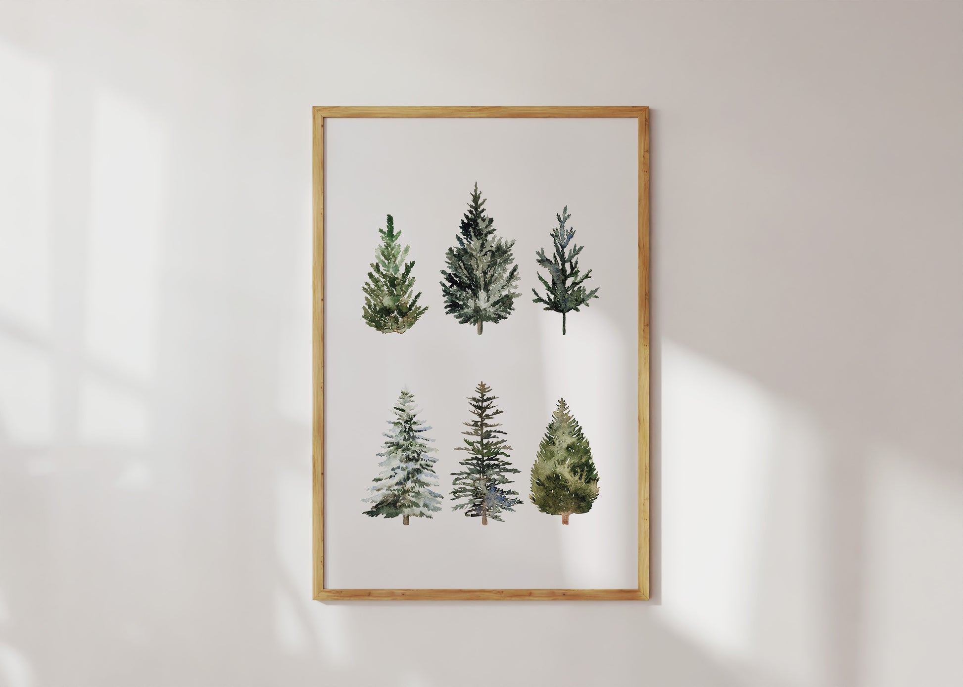 Add a touch of rustic charm to your holiday decor with this watercolor Christmas tree print. Featuring a minimalist winter landscape with pine trees, this will make the perfect addition to your farmhouse Christmas decorations.
