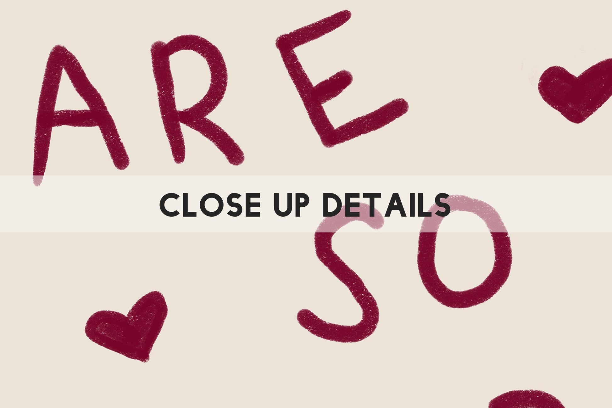 This printable wall art titled "You Are So Loved" features a romantic burgundy lace heart with hand-drawn lettering, designed to add warmth and personality to any space. This art print blends timeless charm with modern style, creating a cozy and inviting atmosphere perfect for enhancing your home decor. Its soft neutral beige background complements a variety of interiors while delivering an uplifting message.